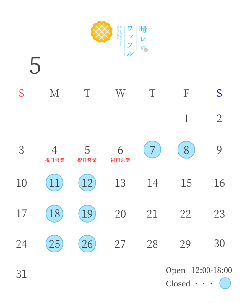 当ホームページおよびSNSにて随時ご案内いたします。今後とも晴レのワッフルをどうぞよろしくお願いいたします。